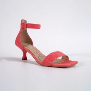 Buckle Strap Low Heel Square Toe Glitter Sandal For Women