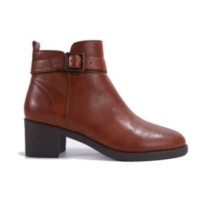 Brown Mid Heel Buckle Women Ankle Boots With Zip