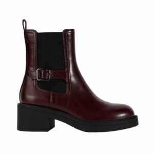 Burgundy Round Toe Chelsea Boots Women Wide Elastic